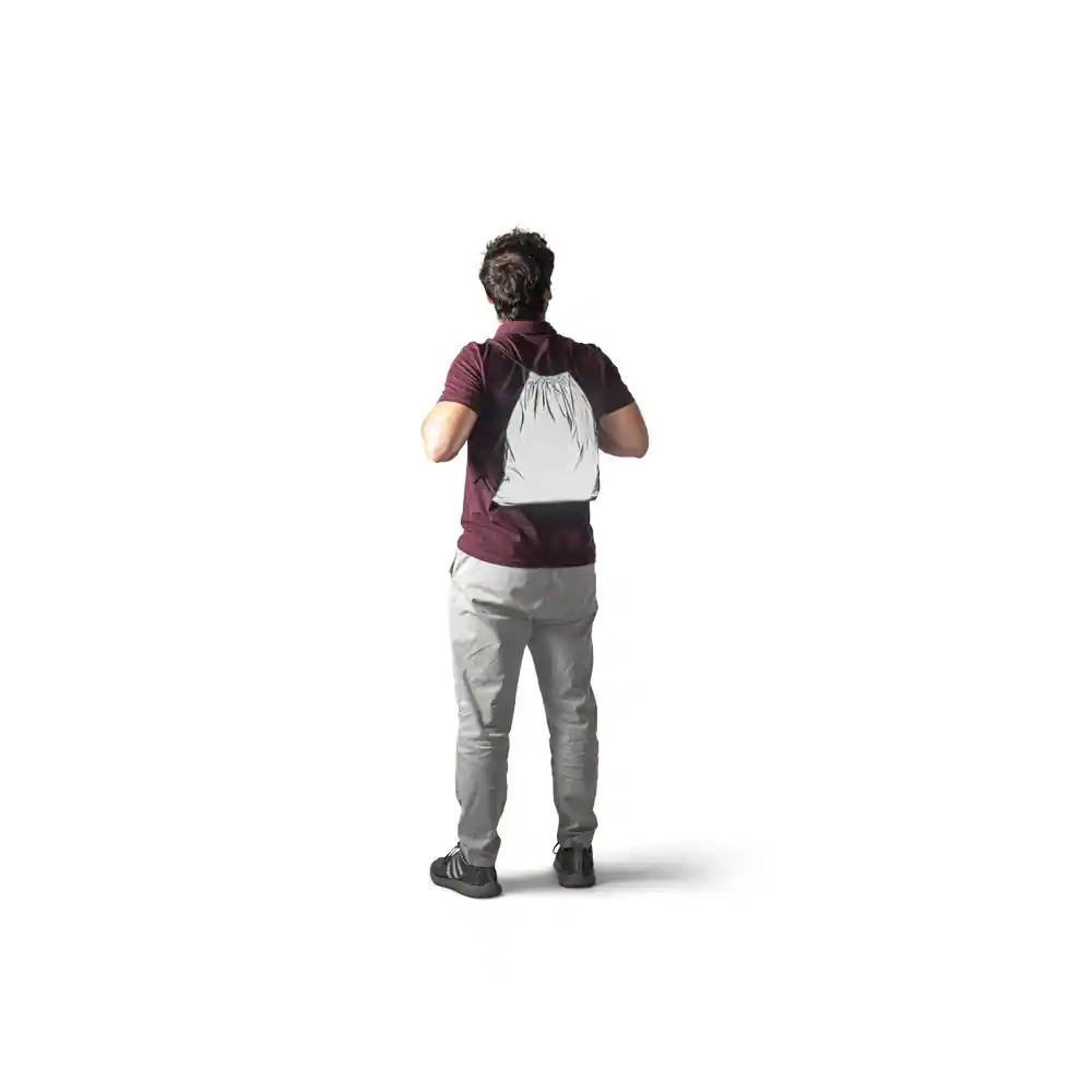 Sacola tipo mochila em poliéster refletivo (200 g/m²) com alças. 320 x 400 mm